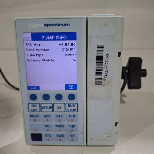 New in BoxNew out of BoxExcellentGoodPoorOEM: BaxterMaterial: Sigma Spectrum 8.01.00 w/o Battery Common Name: Infusion Pump Software Version: 8.01.00 Item Weight: 2 Serial Number: 2102024 ...