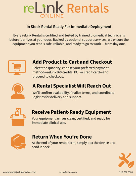 **All equipment is intended for use by licensed medical professionals and facilities; reLink does not supply equipment for personal use**