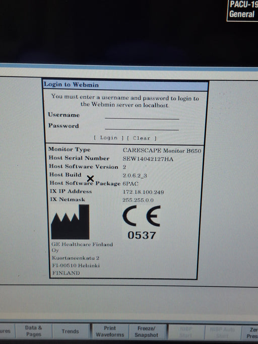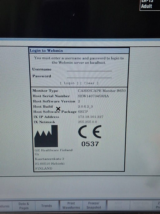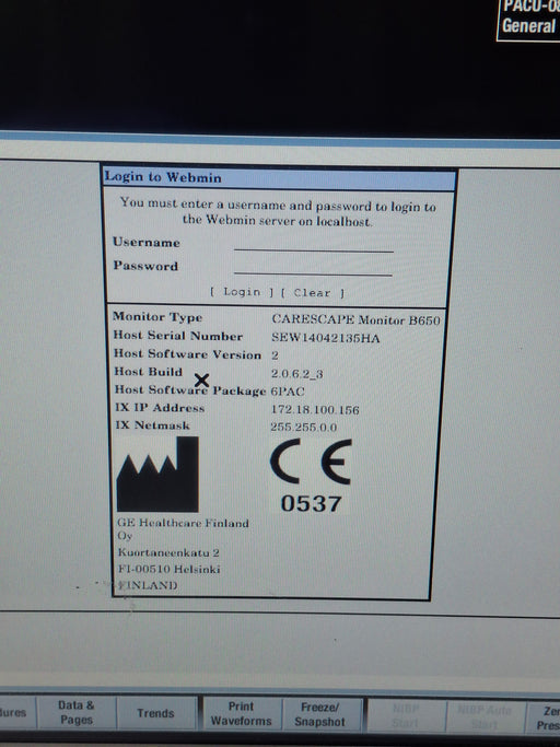 New in BoxNew out of BoxExcellentGoodPoorOEM: GE HealthcareMaterial: Carescape B650 Emergency Care Common Name: Patient Monitor Manufactured Date: 2014-02-01 Item Weight: 20 Serial Number:...
