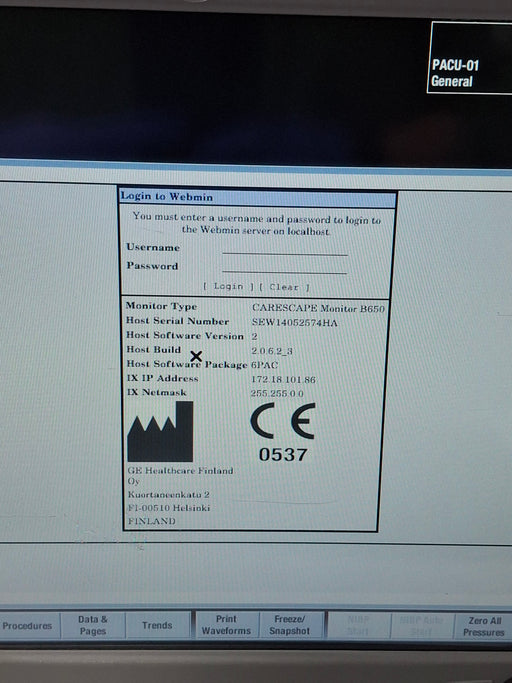 New in BoxNew out of BoxExcellentGoodPoorOEM: GE HealthcareMaterial: Carescape B650 Post Anesthesia Care Common Name: Patient Monitor Software Version: 2 Manufactured Date: 2014-01-01 Item...
