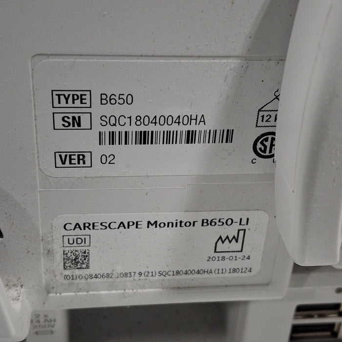 GE Healthcare Carescape B650 Critical Care Patient Monitor