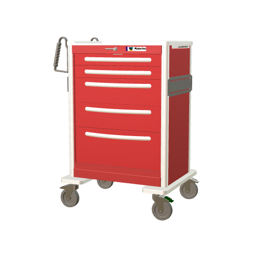 The Waterloo Healthcare Tall, 5-Drawer Aluminum Emergency Cart is a premium crash cart engineered for rapid response, durability, and smooth mobili...