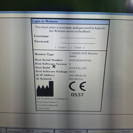 New in BoxNew out of BoxExcellentGoodPoorOEM: GE HealthcareMaterial: Carescape B450 Critical Care Common Name: Patient Monitor Manufactured Date: 2019-05-07 Item Weight: 10 Serial Number: ...
