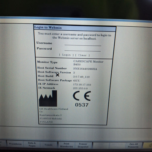 New in BoxNew out of BoxExcellentGoodPoorOEM: GE HealthcareMaterial: Carescape B450 Common Name: Patient Monitor Software Version: 2 Manufactured Date: 2016-02-23 Item Weight: 10.3 Serial ...