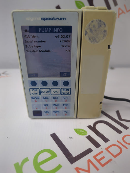 New in BoxNew out of BoxExcellentGoodPoorOEM: BaxterMaterial: Sigma Spectrum 6.02.07 without Battery Common Name: Infusion Pump Software Version: 6.02.07 Item Weight: 2.5 Serial Number: 10...