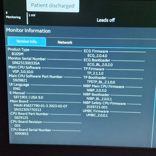 New in BoxNew out of BoxExcellentGoodPoorOEM: GE HealthcareMaterial: B105M Common Name: Patient Monitor Model Name: 6160000-003 Item Weight: 10 Serial Number: SR623120001SA SKU#: Inv-00610...