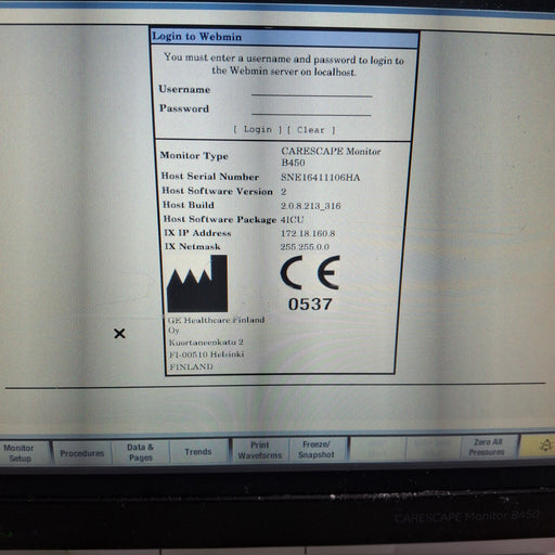 New in BoxNew out of BoxExcellentGoodPoorOEM: GE HealthcareMaterial: Carescape B450 Common Name: Patient Monitor Software Version: 2 Manufactured Date: 2016-10-12 Item Weight: 10 Serial Nu...