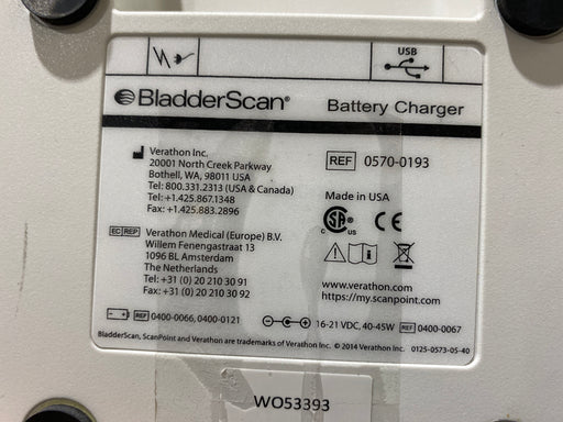 New in BoxNew out of BoxExcellentGoodPoorOEM: Verathon Medical, IncMaterial: BladderScan 0570-0193 Common Name: Battery Charger Item Weight: .9 Serial Number: WO44602 SKU#: Inv-00534840 Po...