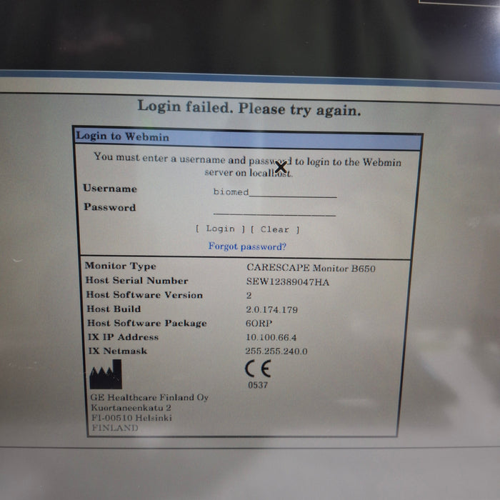 Material: Carescape B650 Anesthesia Care