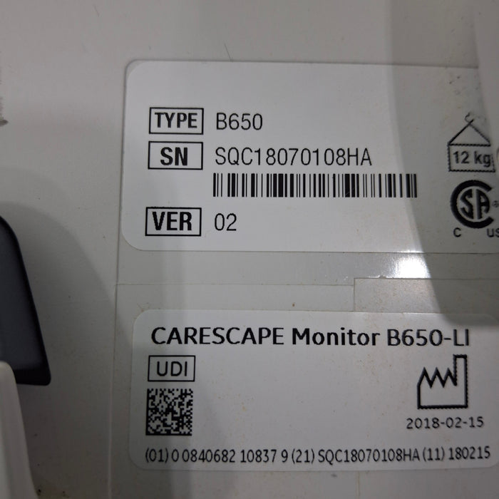 GE Healthcare Carescape B650 Critical Care Patient Monitor