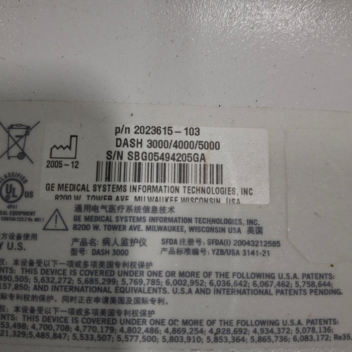 GE Healthcare Dash 3000 - GE/Nellcor SpO2 Patient Monitor